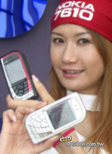 光是外型就讓人愛不釋手的 nokia 7610 ,是先前的葉子機 nokia 7600 的改版之作,這次的設計仍保有葉子的感受,但是機身較為細長,比較方便擁有纖纖小手的女性持握。此外, 7610 也加入了黑與白的行列,但並不是以純黑、純白的方式表現,而是混有其他顏色與紋路,然而總歸一句, 7610 真是美極了。