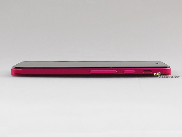 ▲ASUS PadFone Infinity 變形手機「魅力桃」右側為楊聲器、電源鍵與音量鍵。