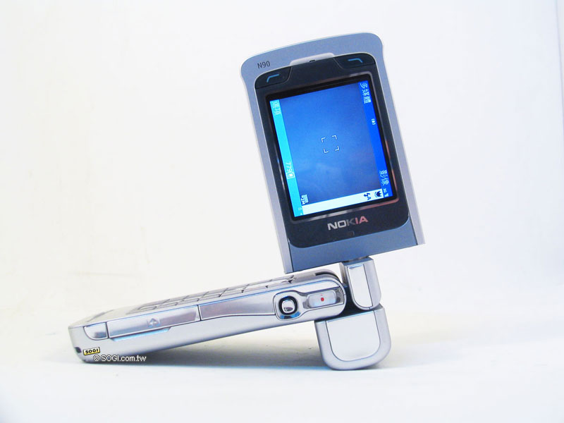 Nokia N90 的鏡頭可約 340 度旋轉,任何的角度都可以捕捉到,將生活中的精采片段都捕捉下來。N90 將鏡頭轉向自己,可進行視訊電話,以 200 萬畫素的相機鏡頭來進行 3G 視訊通話,畫質想必是勇奪 3G 手機之冠。