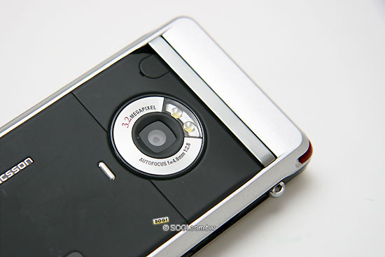 比起 P990i 的 200 萬畫素相機,甚至 M600i 拿掉照相功能,SE P1i 內建的 320 萬畫素自動對焦相機,就令人相當興奮;相機改為內鑲式的鏡頭設計,一方面可以保護鏡頭、一方面則是減輕體機和重量。
