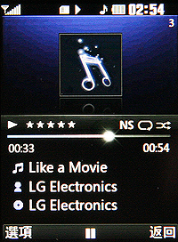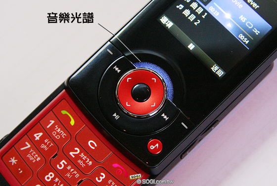 LG KM501 音樂手機除了擁有專屬的音樂播放操作專區,除了強化用戶在使用上的直覺性之外,其實 KM501 也大力的加強用戶在音樂播放時的視覺享受。如上圖,在音樂播放專區上方之藍色圓弧,看過實機之後才知道這原來是它的閃爍光,用戶播放音樂時可自行設定開啟,隨著音符跳動的閃爍音樂光譜,更讓用戶享受如 KTV 般的動感炫光效果。除此之外,上圖的音符按鍵則扮演著立即啟動音樂播放之最重要的角色。( LG KM501 的喇叭孔設於聽筒之上 )