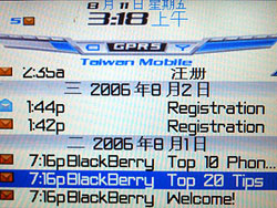 風靡歐美國家的「黑莓機」即將登陸台灣,本月份由台灣大哥大引進,型號分別是入門的 BlackBerry 7290 以及 2006 年最新款的 BlackBerry 8700g。在國外有許多高階經理人和商務人士使用的黑莓機,是由加拿大的 RIM 公司(Research In Motion ) 製造的智慧型手機,發表將近 10 款的機型,目前全球的用戶數超過 550 萬。黑莓機主要使用者以以商務人士為主,有大量的電子郵件需要即時收發,透過 Push Mail 可獲得最新的郵件。