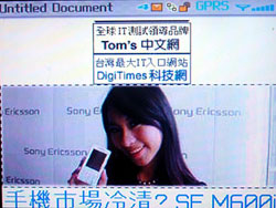 手機上可直接瀏覽 HTML 網頁,由於手機螢幕尺寸和電腦不同,因此黑莓機會自動調整、壓縮至最適合手機上瀏覽的頁面。圖中以流覽手機王網站為例,橫式螢幕較接近一般人上網的使用習慣。