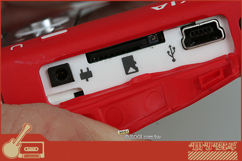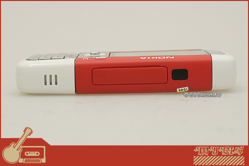 在機身側邊處,如上圖,Nokia 5700 XpressMusic 將充電孔、USB 傳輸線孔與記憶卡插槽集中在同一個地方,其中, microSD 記憶卡 ( 最高可支援達 2GB 的 microSD 記憶卡,可儲存達 eAAC+ 格式約 1,500 首歌曲 ) 的插槽設計,不同於 Nokia 3250 必須扭轉機身,或是打開背蓋才能抽取記憶卡的 Nokia 5300 XpressMusic,此次 Nokia 5700 XpressMusic 在記憶卡抽換設計更為方便。