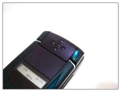 如圖所示,手機上方的五點軟鍵組成的導航鍵,在 Grip Style 型態下可當作方向鍵,中央的軟鍵則為確認鍵,無論是瀏覽 Office 軟體如:word、excel 等時都能夠方便的導覽,外螢幕採用一條四色灰階的螢幕,在日本外螢幕越做越小以及取消是一種趨勢,因為近來日本社會的個人隱私重視度提高,許多人不願意讓旁人知道與誰在用電話溝通,因此才會有這樣的設計。