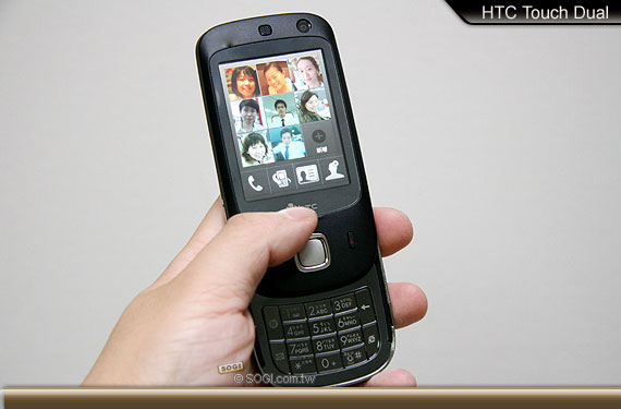 HTC Touch Dual 在上蓋滑出以及沒有滑出的狀態下,都可以操作手機的功能,而將上蓋滑出之後,則是直接進入電話的撥號介面,此時下蓋的數字按鍵區就派上用場,也可以搭配觸碰式螢幕來撥打電話。
