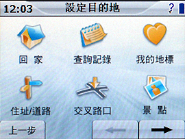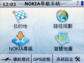 到底諾基亞跨行推出的車用導航器能不能帶你上山下海?實地走一趟就知道!開機後,主頁面會請你點選欲使用的功能,觸控導航選項後,簡單的字幕顯示與語音提示。