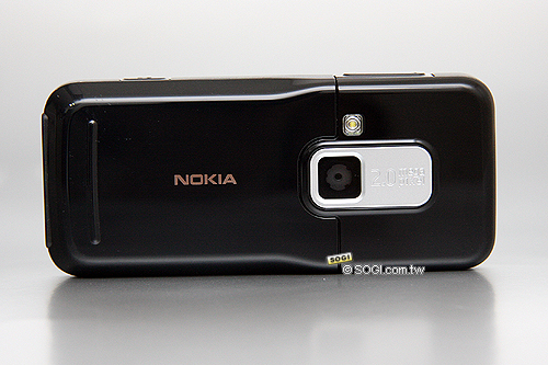 Nokia 6120 classic 在色系上共有黑白兩色,黑色沈穩、白色亮眼 ( 白色實機圖,請點我 ),可滿足男女不同消費族群的需求。在機身背面上,Nokia 6120 classic 表現得非常簡單,除了以鋼琴考漆材質為主設計之外,一顆 200 萬畫素相機 + 一顆 LED 閃光燈的配置,在簡單低調的設計中帶出強大的行動拍攝功能。