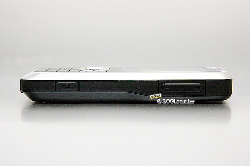 在機身側面上,Nokia 6120 classic 擁有一顆相機快門鍵,在旁邊則是音量與變焦調整操作鍵,此側邊設計同樣也是以橫向拍攝為主之雙面設計手機當中的一項很基本的設計。