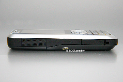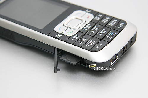 在另一邊,可以看到 Nokia 6120 classic 的揚聲器與 microSD 記憶卡擴充插槽,記憶卡擴充容量最大可支援至 2GB 的大小。