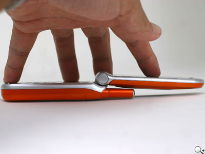 值得一提的是,LG U8180F 可以將手機的上蓋,用手壓到 180 度,轉軸有相當強的彈性,和過去的韓系手機有完全不同的設計。