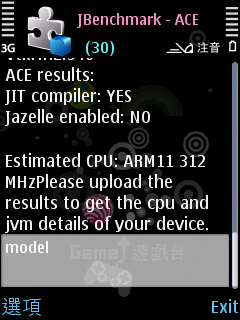 ARM 與 JBenchmark 合作開發的測試程式「ARM CPU Estimator(ACE)」,可測試手機的處理器與 Java 效能,以及 CPU 資訊以及圖表。測試的方法非常簡單,只要將 ACE 程式傳到手機或記憶卡當中,打開程式在手機上安裝即可。安裝完成後,打開 ACE 應用程式檔案並執行,即可就可以看到如 CPU Family、時脈與 Java 效能圖表等資訊。結果顯示,Nokia N81 屬於 ARM11 系列,執行時脈為 312MHz,不支援 Jazelle 硬體 Java 加速。