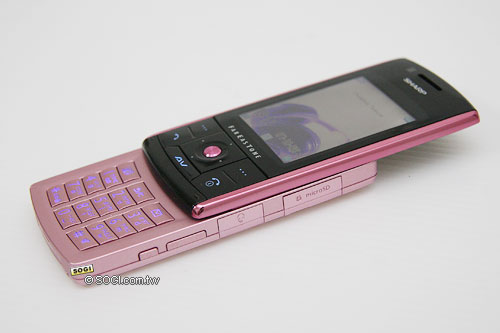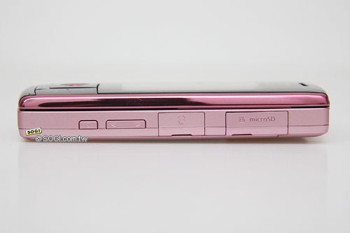 Sharp WX-T82 擁有超薄機身設計,機身薄度僅 15mm,而此薄度也是目前在台灣市面上,Sharp 手機當中最薄的 ( Sharp WX-T81 擁有 17.1mm 薄度 )。除此之外,Sharp WX-T82 為了達到機身設計上之簡化視覺效果,特別把快捷鍵都設計在同一側邊上,如上圖,由左至右分別是:相機鍵、音量調整、耳機插孔與 microSD 記憶卡插槽 ( 最大可支援至 2GB 容量 )。