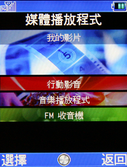 在操作介面上,Sharp WX-T82 擁有非常齊全的設計,此外它還具備多媒體播放選單快捷鍵 ( 上圖 AV 按鍵 ),按下後螢幕馬上秀出多媒體播放選單,其中還包含 FM 收音機功能。