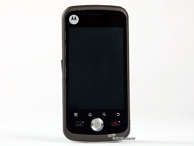 ▲MOTO QUENCH XT3 增加了軌跡球 Trackball,反應速度十分靈敏,使用者可以單手操作手機,十分方便。實體鍵使用與螢幕相同的電容式觸碰,按鍵設計與螢幕融為一體,分別為設定鍵、Home 鍵、搜尋鍵、返回鍵。較為不便的是沒有背光顯示,在夜間使用時會看不清按鍵所在。軌跡球 Trackball 兩側使用實體按鍵的通話鍵及掛斷鍵,通話鍵下方為麥克風收音孔。