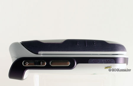 側邊的部分,同樣是採取雙色、雙材質的設計方式,左側為音量調整鍵與拍照快捷鍵,不過,W710i 不支援闔蓋自拍;右側則為按鍵鎖,利用上下推動就能鎖/開按鍵。