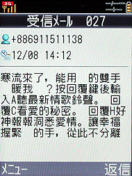 由於只有日文、英文介面,所以輸入也只能倚靠英文和日文,904SH 大約能讀取 90% 的中文字,少數日文漢字當中沒有的字,就無法顯示。而 904SH 支援 GSM/3G 雙模,所以 SIM/USIM 卡都可以使用。而雖然 904SH 解鎖,但 GPRS、MMS 等網路服務的功能都無法使用,鈴聲格式也只能用 MMF、MIDI 檔等,無法使用 MP3 直接作為鈴聲。