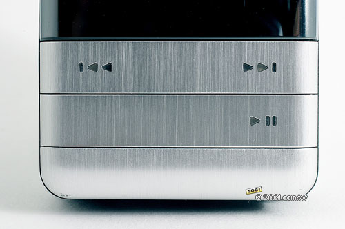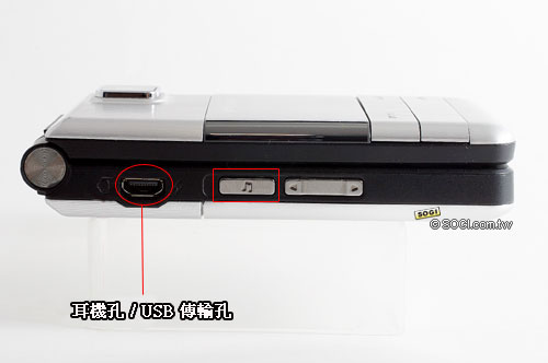 機身側邊除了有音樂播放快捷鍵設計之外,使用者還可以在這邊直接調整音量大小,此外,耳機插孔與 USB 傳輸孔位置亦設計共用於在同一處。