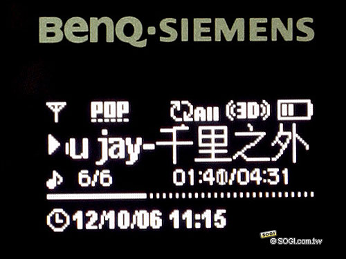 BenQ-Siemens EF71 首推主打的功能便是 MP3 音樂播放,EF71 內建二種播放器面板,皆各自有其專屬的味道,一黑一粉,剛好符合男女消費族群之喜好。