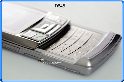 滑開外蓋,金屬蝕刻按鍵設計讓 D848 金屬質感倍增,整體加分不少。