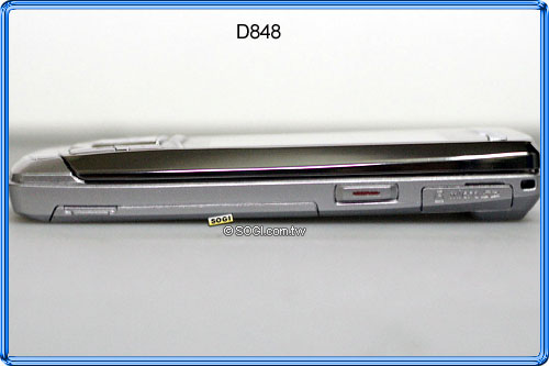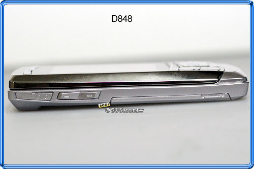 儘管擁有超薄 11.95mm 厚度,D848 機身兩側也分別設置快捷鍵:右側為「攝錄快捷鍵」與「microSD 記憶卡插槽」,左側為「音量/選項調節鍵」與「充電/耳機/USB 傳輸埠」。