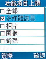 E708 除了拍照功能炫之外,它的鎖功也輸人不輸陣,多媒體訊息、相片、圖像、鈴聲等幾個重點功能鎖起來,這樣,手機即使落到別人手裡,挺多也只能當作是遊戲機。