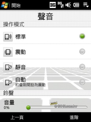 Touch Pro 在系統中還加入了 TV-Out 的輸出功能,讓手機中的檔案可直接連接電視或投影機播放,不過傳輸線必須另購,並不在標準配備內;動能感應器則可透過 G-Sensor 校正,讓方向感應更為準確。