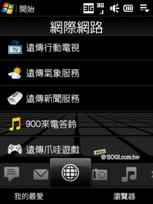 由於 Touch Pro 是由 HTC 與遠傳合作販售,所以在網路瀏覽的部份,也客製化為遠傳上網專用,預設的首頁更換為遠傳行動網,使用者只要插入遠傳 USIM 卡,待手機辨識系統資訊並安裝對應的上網設定,即可直接使用。除了瀏覽器首頁,HTC 也將遠傳各項服務頻道以書籤方式呈現,方便點選連結;另外在 TouchFLO 3D 的程式集頁面,也可看到遠傳各項服務的捷徑,同樣可點選直接連網體驗。