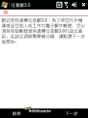 商務人士最重要的 Push Mail 即時電郵功能,除了原本 Windows Mobile 手機就支援的 Exchange Server,遠傳也將任意郵程式整合在手機中,透過任意郵的設定,Push Mail 的範疇不僅限於 Exchange Server,連一般使用者常用,透過POP3 方式的 Yahoo 和 Gmail,只要經過遠傳任意郵伺服器的協助,隨時都能保持連線狀態,遠端同步個人最新資料和郵件。