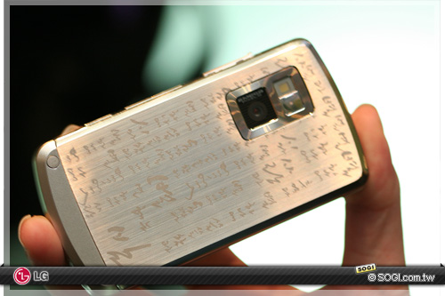 在展示現場,記者發現一款比較特別的 LG KE970 SHINE,特別的地方在於其機身背面,烙印著許多充滿藝術美感的字體,根據現場 LG 工作人員表示,這種加字特別版的 KE970 是韓國的特殊版本,台灣市場方面也可能有引進的計畫。