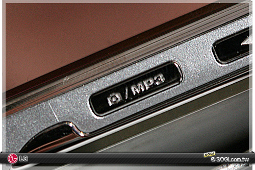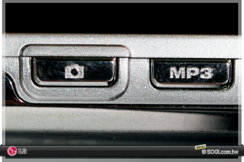 上圖是 LG KE970 SHINE 的機身側邊設計,相機快捷鍵與 MP3 音樂播放鍵分開,而下圖則是兩功能鍵合一的 KE770。