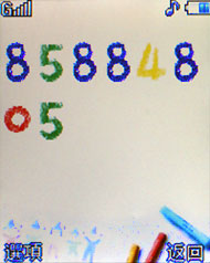 撥電話的顯示介面也有三種,一是用粉筆寫黑板的感覺;另一種則是多種色彩蠟筆塗鴉的風格,最後一個則是與桌面背景相同的介面。