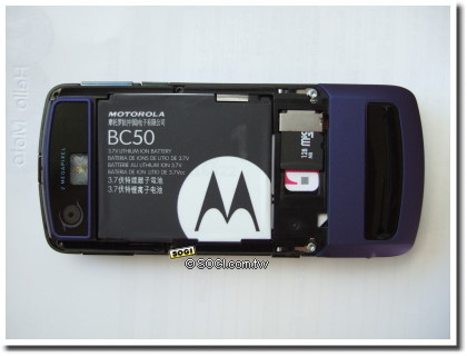 背部並沒有延續使用上蓋的玻璃鏡面,採黑色 V3 的霧面處理。支援外接 MicroSD 卡,最高可擴充至 1GB 容量。