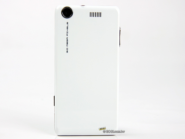 ▲台灣大哥大 TWM T1 的背蓋是一整片的設計,材質和正面一樣都是白色的鋼琴烤漆面。