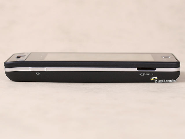 ▲GIGABYTE GSmart S1205 在側面設計上多了一條銀色條紋,讓手機側面更為生動。左邊有音量調整按鍵,不過此音量鍵也當成許多程式的上下移動鍵,讓消費者一手就可以控制所有功能。