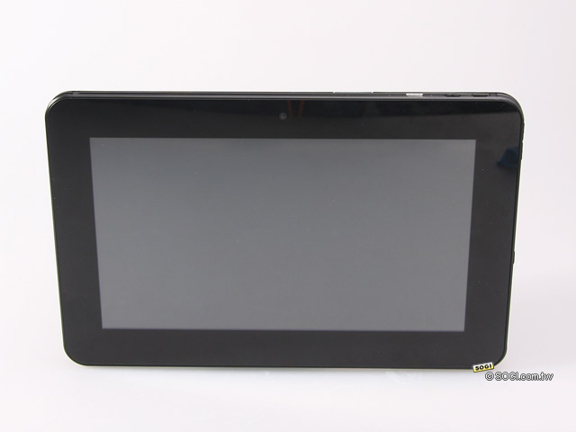 ▲ViewSonic ViewPad 10s 正面簡單到不行。除了上方的視訊鏡頭,以及 10 吋 1024 x 600pixels 電容式觸控螢幕外,沒有其他實體按鍵或熱感應鍵的設置。ViewSonic ViewPad 10s 外殼雖為塑膠材質,但重量還是達到了 730 克,拿在手上頗具份量。操作時,機身平均溫度在 30~35 度之間,不會燙手。
