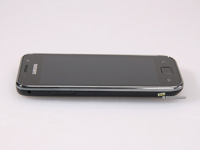 ▲機身右側為電源鍵,平時「短按」可關閉螢幕。從這個角度可以看出,SAMSUNG GALAXY S i9003 11mm 的厚度,在智慧型手機中,真的算是很薄。