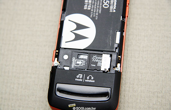 說到記憶卡的放置,一向就是 MOTO 手機的惡夢,ROKR Z6 仍然沒有從這個惡夢中醒過來,要取出記憶卡必須打開背蓋,再用指甲把它取出來,的確是不太方便的地方。