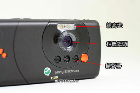 Sony Ericsson W810i 內建 200 萬畫素數位相機,相機鏡頭設計在機身背面,與 W800i 不同的是,W810i 沒有相機蓋的設計,另外,在揚聲器的部分,雖然與 W800i 一樣設計在背面,但是其大膽的表現方式上卻與 W800i 完全不一樣,W800i 細長的揚聲器設計給人的感覺比較含蓄。在補光燈的部分,這二款同樣都有 2 顆強力的補光燈燈泡。