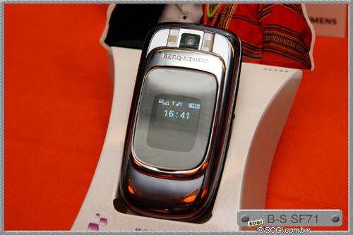 BenQ-Siemens 3G 手機團隊再添生力軍!甫獲台灣精品獎、擁有時尚外型的 BenQ-Siemens SF71 黥面圖騰機,獨創 MP3 及相機功能雙向滑蓋切換設計,結合台灣泰雅族黥面圖騰上蓋,以台灣的原生之美,引領 3G 手機潮流。