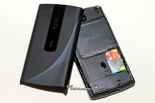 ▲ 拔開背蓋後,出現的是電池和 SIM 卡槽,其中,電池容量為 900 mAh,和 Diamond 的一樣。