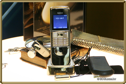 即使少了周大福限量版雙金雙色 Crasis 融合戒指,台版的 Nokia 8800 Sirocco Gold 18K 金限量典藏版隨機附贈的東西還是一樣沒少,包括皮套、金色藍牙耳機、專屬有線耳機與專屬金色手機座充。