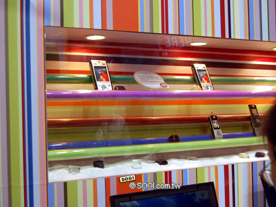 其實每年的北京電信展新機都不多,但今年 MOTO 不吝嗇地曝光粉紅版 V3 ,讓人大飽眼褔。可惜的是傳說中的「銀藍版」 V3 未現身,但據說顏色近於銀色版 V3 ,只是偏著淡淡藍光,感覺更為時尚。配件部份的展出當然沒有藍芽之王 SE 來得豐富,但機種的數量與該品牌產品的完整性,是此次參展的其他廠商所遠遠不及的。