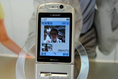 Sharp 902SH 擁有 2.4 吋的 ASV 液晶 ( Advanced Super V ),是 Sharp 的獨家技術,讓螢幕可視角度可以達到 170 度,亮度也相當的高。用 902SH 來進行視訊通話,在會場的畫面更新速度還算流暢,透過子母畫面來瀏覽,無論是自己或是對方的畫面,都能夠清楚的瀏覽。可惜會場太吵了,聲音聽的不是很清楚。