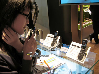 Panasonic 的 SA ( Sporty and Active ) 新系列,主要是強調運動和活力的外出手機,外殼以精緻的運動塗裝,讓我們在戶外旅行郊遊的時候,不用擔心手機外殼輕易的被刮傷,卻依然享有百萬畫素等級的拍照功能 !!展場中的 SA 系列手機,和運動鞋擺在一起,很明顯的可以看的出風格。