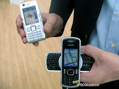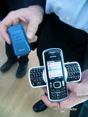 這位老兄,看到我們就走過來向我看展示西門子最先進的技術:GPS。看他一手拿著 SXG75,另一手又是 SK65,讓人摸不清他想要做什麼示範。
