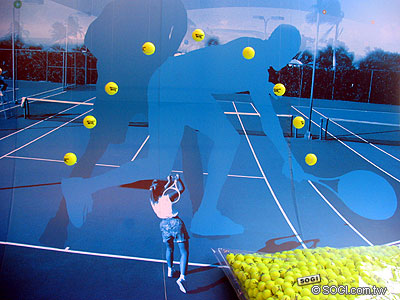 上圖就是 Sony Ericsson 為了讓參與的民眾更加深目前正在舉辦的世界手機遊戲大賽之印象,特別於會展中規劃一個模擬網球的實境景象區。同時亦間接點出 Sony Ericsson 手機內建的 3D 網球 Java Game 在去年中是一項極受消費者歡迎的遊戲之一。