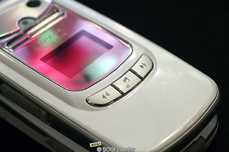 在外螢幕的上面就是它的 130 萬畫素鏡頭,以及一個補光燈的設計,相信它將可以取代市面上任一款的 PHS 手機,成為 PHS 界的新霸主,當然科技是越來越進步的,未來還是會有更強大的手機推出,不過這款 PH1900 應該可以延續很久,因為上一款配有相機的雙模機種 G1000 也已是兩年多前的機種了…