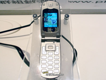 PHS V82 是由中國廠商中興 (ZTE) 所代工,是一款低階的純通話入門手機。採用折疊式的造形設計,沒有太多複雜的功能,沒有 MP3 播放亦無相機功能,在輕巧的體積之下,通話時間長達 5 小時,而待機時間也可以達到 200 小時。