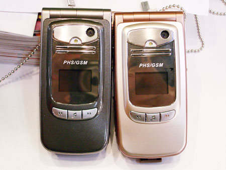 這是從未露面的 PHS 機種,雙色的機種,明顯的看出 PHS 對於分眾化的市場已經感染了這種既念,雖然沒有非要黑的一定要拿黑的,女的一定要拿粉紅色的,但這是比較大眾化的觀念,也許哪天你也可以巔覆一下。